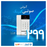 گوشی صوتی ارتباط داخلی مدل ۲۹۹ یکی از کاملترین و زیباترین محصولات حوزه ارتباط داخلی در بازار است. ویژگیهای متمایز در طراحی ظاهر نظیر اتصال دسته گوشی به بدنه بهصورت مغناطیسی، نمایشگر اعداد دیجیتال، دکمه لمسی، کلید برجسته قفل بازکن در پایین محصول در کنار ظرافت در طراحی و ضخامت کم بدنه این محصول آن را به انتخابی منحصربهفرد تبدیل کرده است. جنس بدنه این محصول از ABS آنتی استاتیک بدون تغییر در رنگ بدنه است که دوام بسیار بالایی را در برابر کهنگی به محصول داده است. بهمنظور برقراری ارتباط داخلی با واحدهای دیگر، ۱۲ عدد کلید لمسی وجود دارد. برقراری ارتباط صوتی از طریق دسته گوشی در سمت چپ محصول انجام میشود که بهصورت مغناطیسی به بدنه گوشی متصل میشود. در قسمت کنارهی سمت راست گوشی نیز دو عدد کلید مکانیکی جهت تنظیم صدای زنگ دم دری و ارتباط داخلی تعبیهشده است.