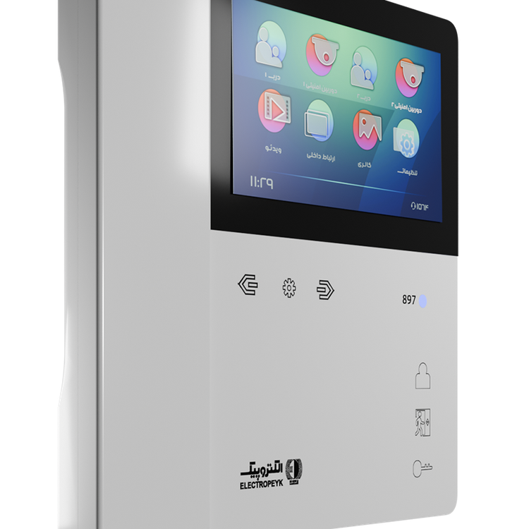 گوشی تصویری ۸۹۷ یکی از جدیدترین محصولات شرکت الکتروپیک است. این محصول طراحی بسیار مینی مال و چشمنوازی داشته و با قابلیت اتصال دسته گوشی به بدنه بهصورت مغناطیسی محصولی منحصربهفرد در بازار بشمار میآید. در قسمت جلوی محصول مانیتور ۴.۳ اینچ از نوع LCD-TFT قرار دارد که از طریق چهار عدد کلید لمسی که در زیر آن قرار دارد میتوان وارد منوی تنظیمات محصول شد و از امکانات مختلف محصول استفاده کرد. همچنین در قسمت سمت راست محصول نیز سه عدد کلید لمسی دیگر بهمنظور انجام عملیاتی نظیر مشاهده تصویر مراجعهکننده، برقراری ارتباط داخلی و قفل بازکن قرار دارد. همانطور که گفته شد ویژگی متمایز این محصول اتصال دسته گوشی به بدنه از طریق نیروی مغناطیسی است که عملیات قطع تماس صوتی و تصویری نیز از همین طریق انجام میشود. جنس بدنه این محصول از مواد ABS ساختهشده مقاومت بالایی را در برابر کهنگی و تغییر رنگ به آن داده است.