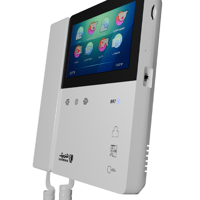 گوشی تصویری ۸۹۷ از جمله محصولاتی است که علاوه بر ظاهری زیبا دارای ویژگیهایی از قبیل، حافظه داخلی و امکان نصب کارت حافظه، امکان پشتیبانی فیلمها با ضبط صدای مراجعهکنندگان ،امکان اتصال به دوربین مداربسته ،امکان تنظیم ملودی و امکان تنظیمات رنگ و روشنایی و درخشش در صفحهنمایش و تنظیمات زمان و تاریخ و قابلیت اتصال به دو پنل دم دری است. رابط گرافیکی محصول از نوع OSD است که در آن کاراکترهای گرافیکی بهصورت نوشتاری بر روی صفحهی نمایش قرار دادهشده است. در تولید بردهای الکترونیکی محصول از فنّاوری SMT با پکیج ۰۶۰۳ استفادهشده است. همچنین فیبر بردهای الکترونیکی از نوع KB۶۱۶۰ است.